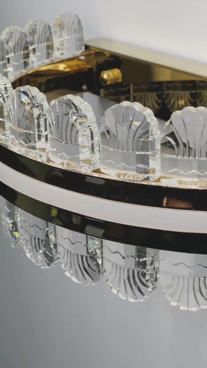 Upptäck MEDUSA vägglampa  en unik och elegant lampa som förvandlar varje rum med sitt förtrollande sken. Lampans vackra kristaller är inspirerade av maneter och fångar ljuset på ett sagolikt sätt, vilket sprider ett glimrande och mjukt sken som påminner om en magisk undervattensvärld. Varje kristall är noggrant designad för att skapa en känsla av djup, elegans och mystik.