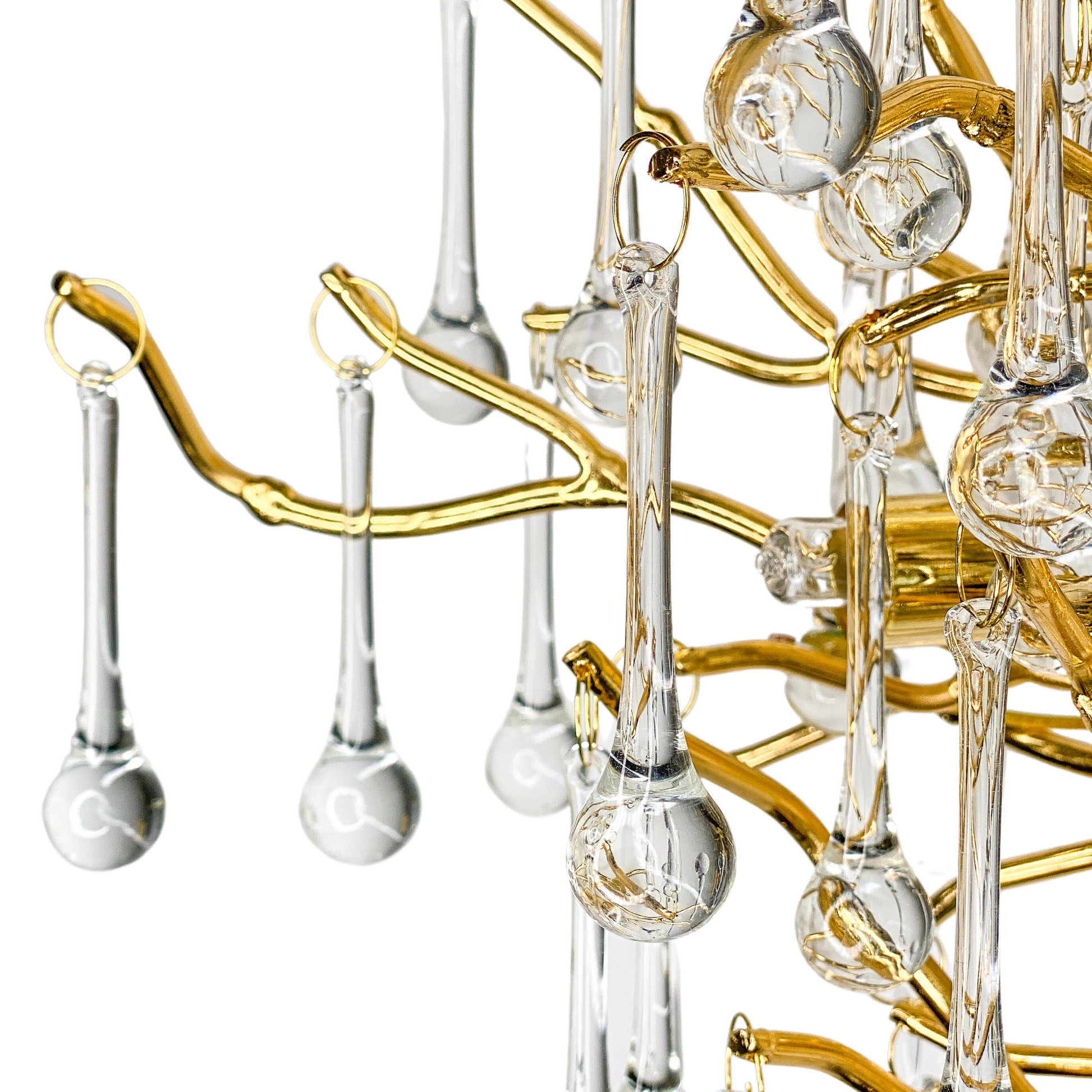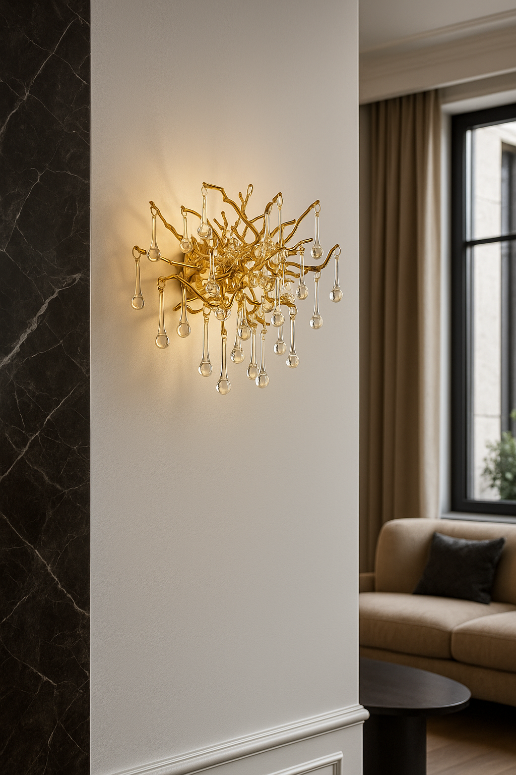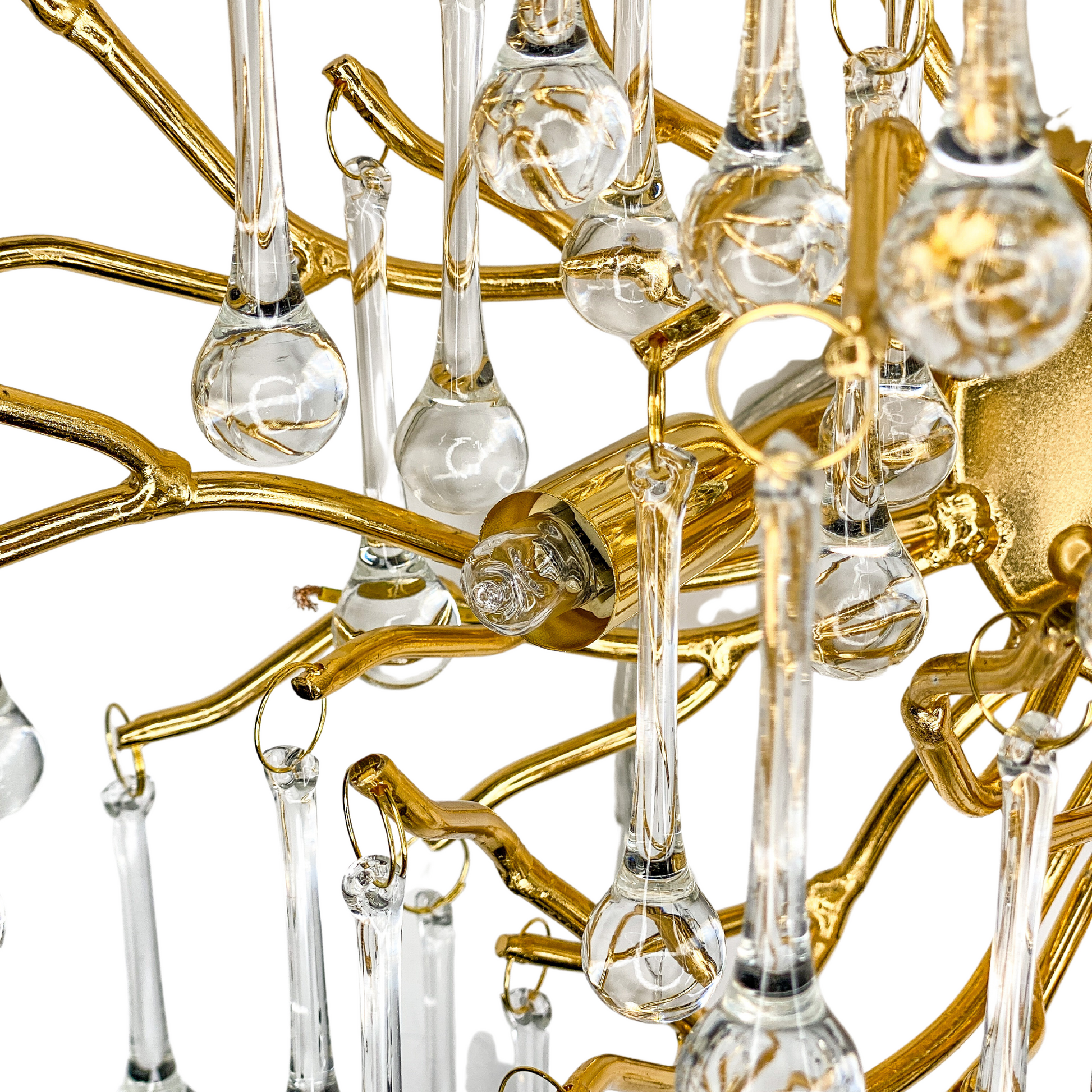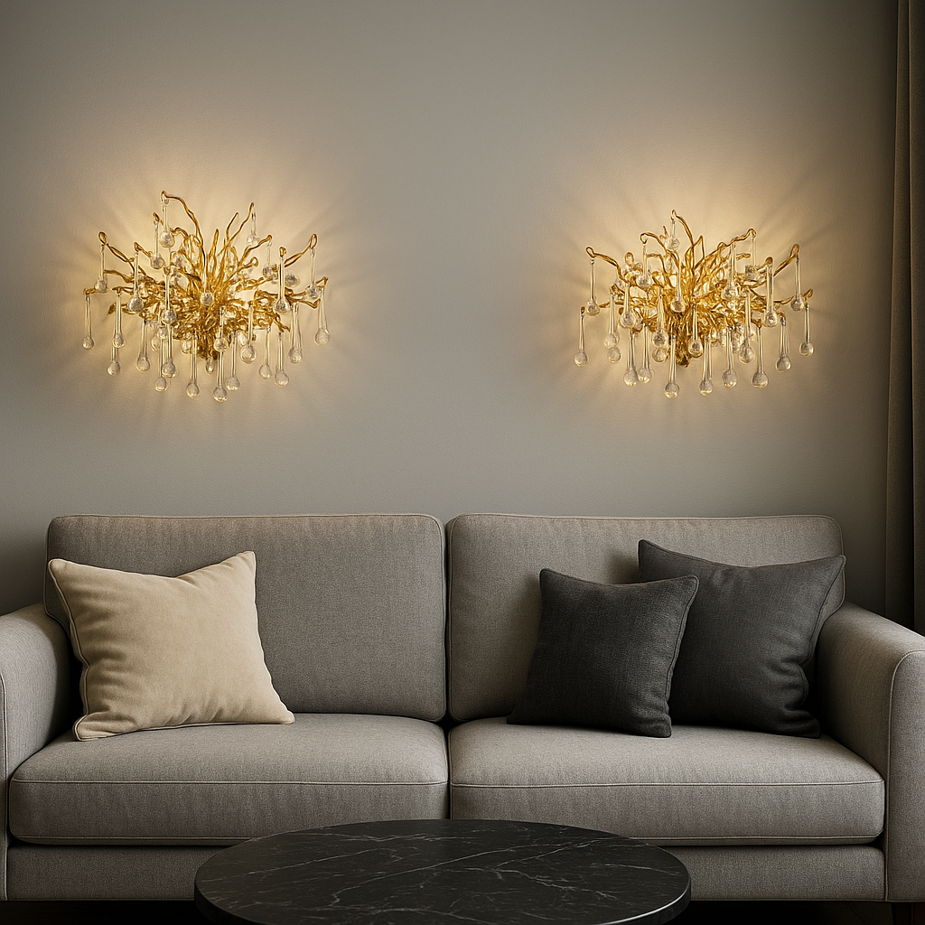 Förvandla ditt hem med vår unika ljuskrona, smyckad med högkvalitativa K9 kristaller som reflekterar ljuset likt daggdroppar på ett sagolikt träd i skogen. Denna moderna och eleganta design kombinerar delikat hantverk med en sofistikerad guldkrona, vilket skapar en förtrollande atmosfär i ditt vardagsrum eller sovrum. Perfekt för dig som söker exklusiv belysning som både lyser upp och förhöjer inredningen med en touch av glamour och klass.
