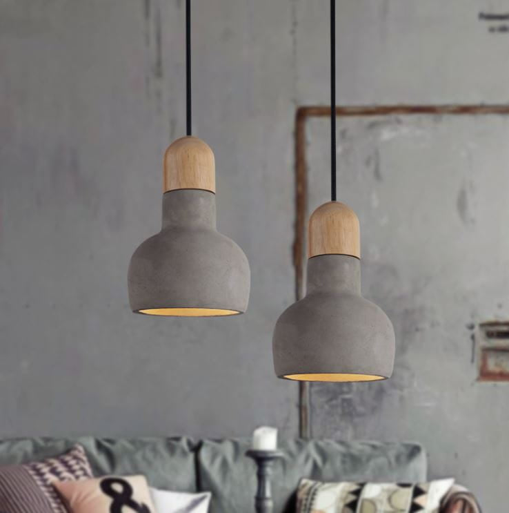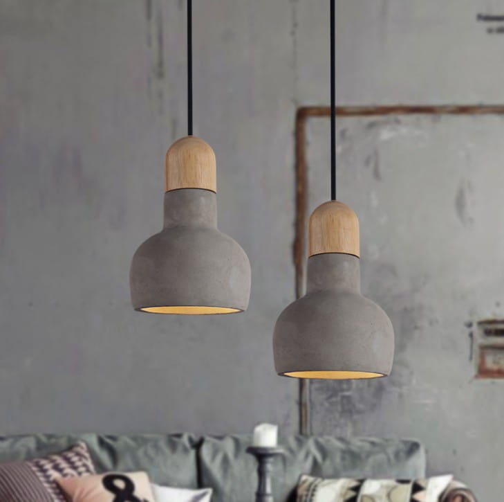 Betonghänglampa OLO med trädetaljer Ø 21 cm