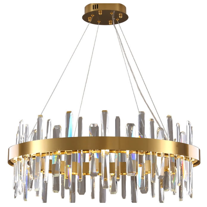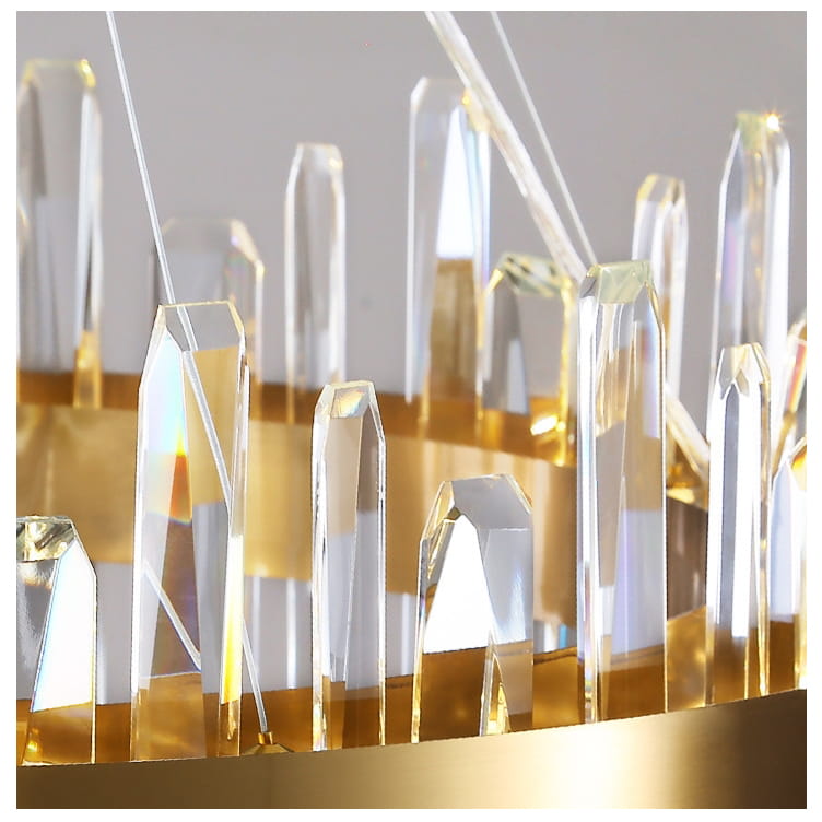 Förvandla ditt rum till en glittrande oas av elegans med vår bedårande kristallkrona. Omringad av skimrande K9 kristaller, var och en 30 cm lång, fångar denna lampa ljuset på ett förtrollande sätt och sprider en härlig glans över rummet. Med en integrerad LED-ljuskälla på 4100K erbjuder den en balanserad och naturlig belysning som lyfter fram varje detalj i din inredning.