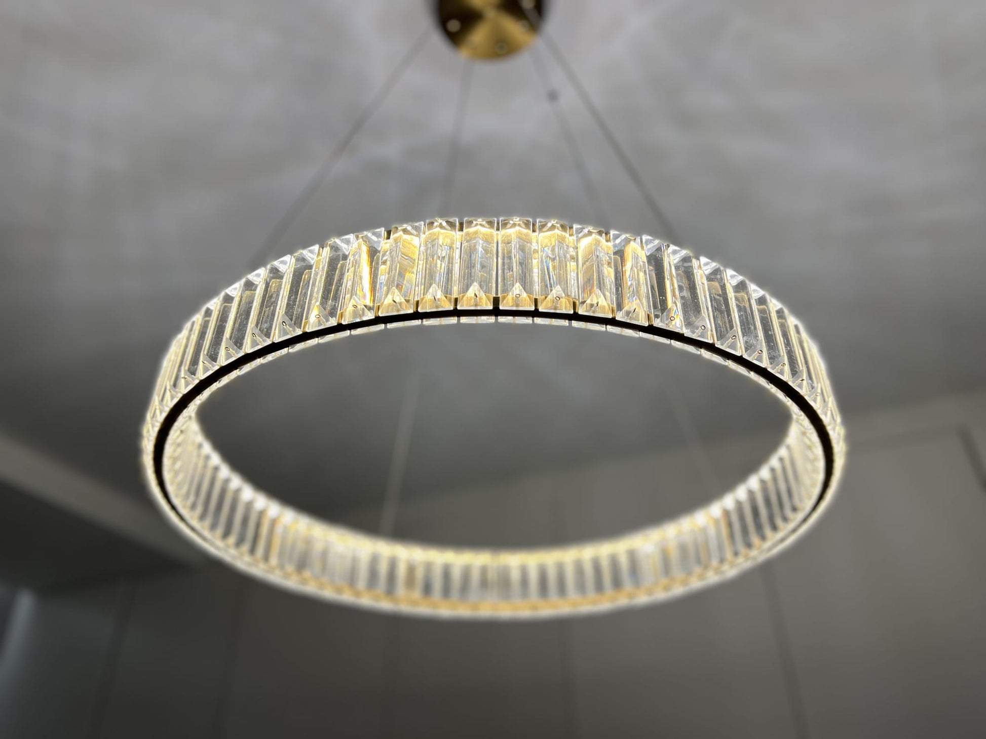 Skapa ett hem som utstrålar stil och lyx med Ring Kollektionen – en exklusiv kristallampa som kombinerar modern formgivning med högkvalitativa material. Med två glittrande rader av handslipade K9-kristaller sprider lampan ett mjukt, reflekterande ljus som ger varje rum en varm och inbjudande atmosfär.